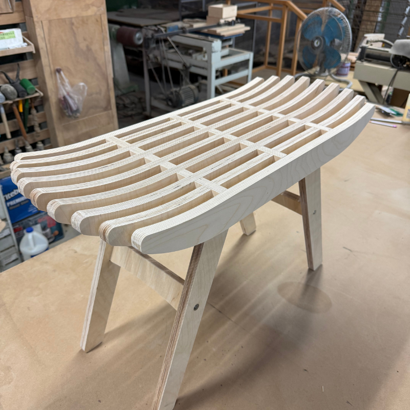 從設計到落實,每一個細節都考驗著 CNC 的精準與木作的理解。這樣的椅子不僅具備功能性,也展現了模組化設計的可能性。無論是單椅、多人座椅,甚至是其他造型的衍生,都能透過相同的骨架概念自由延伸。