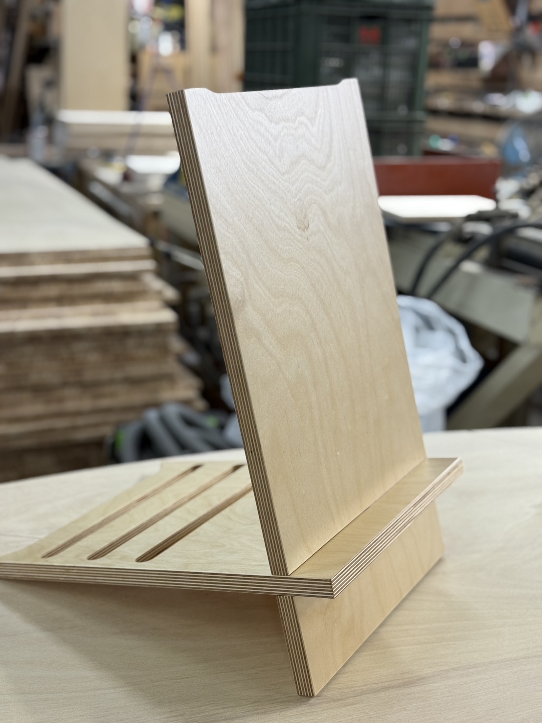 這次的訂製案以 樺木夾板 為核心,用 CNC 精準切削出俐落的卡榫結構,兩片組合即可站立,無需螺絲、不用膠水,像雪地裡的第一道刻痕——乾淨、純粹、俐落。