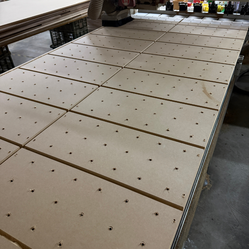板材依需求分割成模組尺寸,方便運送、施工與後續更換。加工過程中搭配真空吸附平台固定,降低板材位移風險,孔緣乾淨俐落,減少後續修整時間。不管是用在展示牆、工作室收納、商業空間陳列,或是工廠機能牆,這類洞洞板都能快速上線、長期耐用。